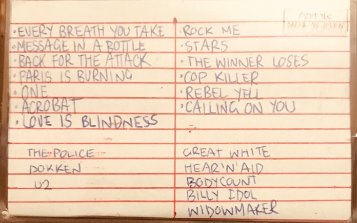 Moving onto Side 2, I had the film clip of Great White’s “Rock Me” and “Stars” from Hear N Aid, so I copied those songs. Then Body Count and “Cop Killer” song came next, some Billy Idol and his “Rebel Yell” and I finish it off with Dee Snider’s “Calling On You” from Widowmaker which actually took the spot of another Body Count song called “The Winner Loses”.