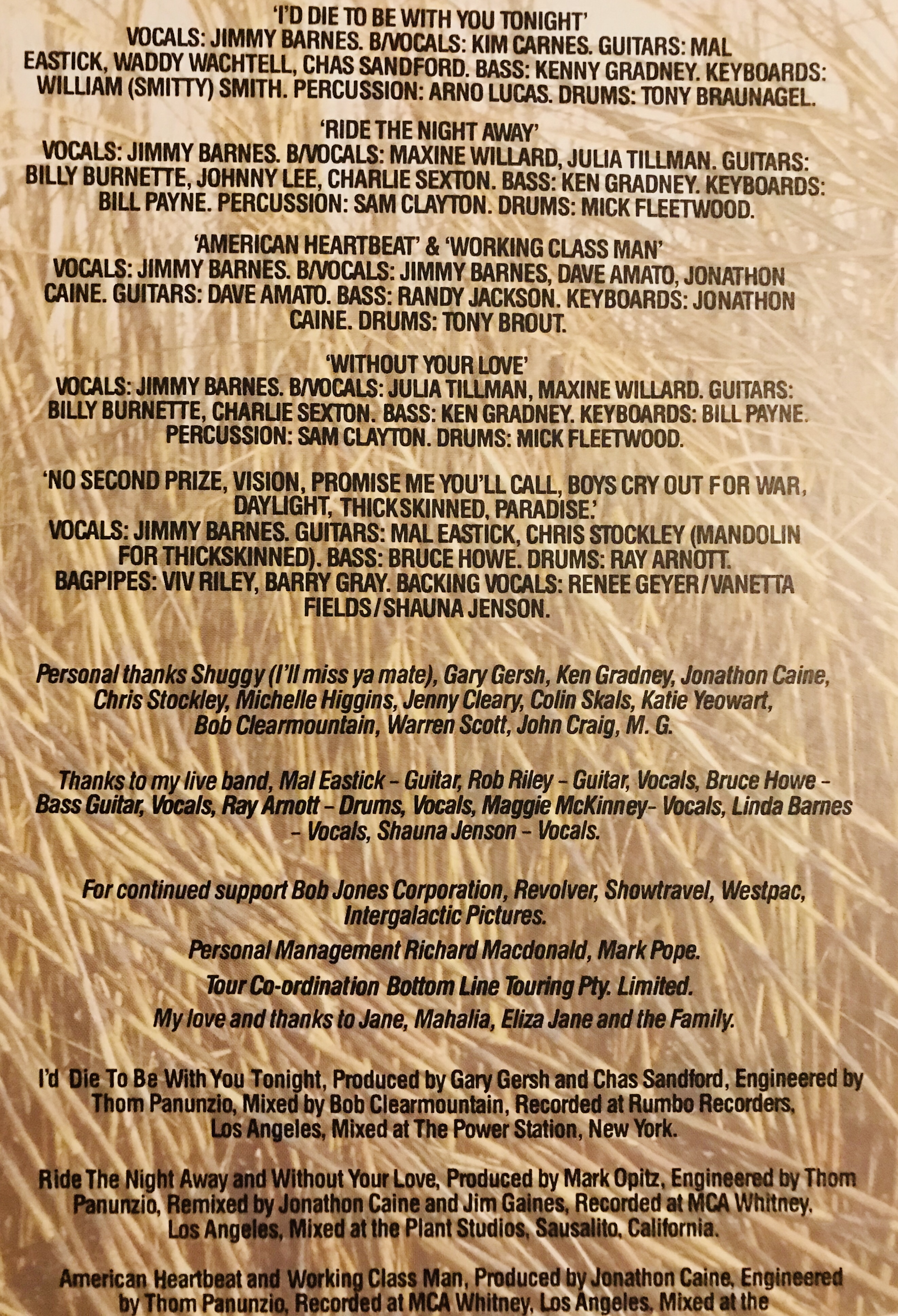 The album dropped in 1984 and went straight to Number 1 in Australia. Jimmy Barnes was reborn as a solo artist.