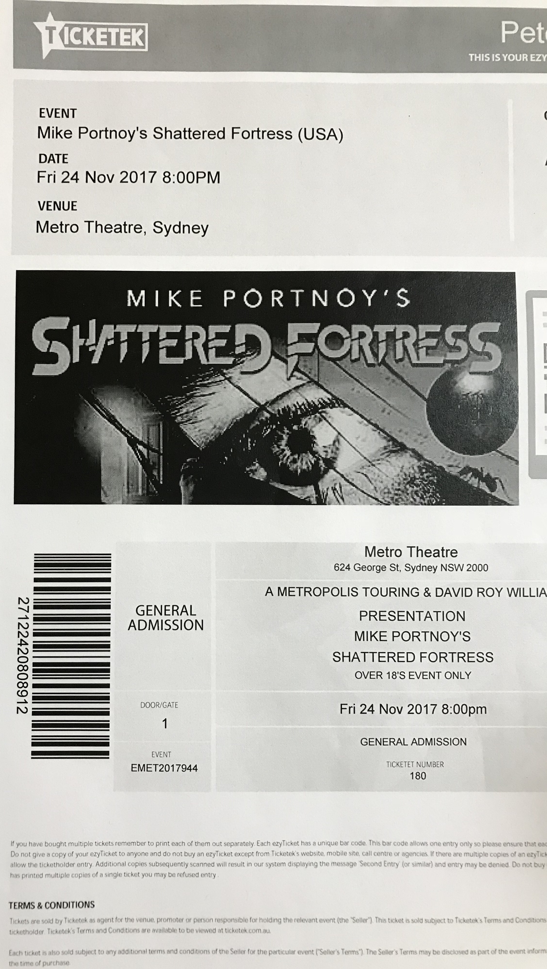 I remember I had a Ticketek voucher given to me for my birthday in 2016. I remember using that voucher in 2017 to purchase this ticket. I actually purchased two tickets to the concert.